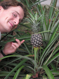 Hello Singapore: In an effort to head off another visa run to Burma (not that we didn't love it) We next hopped a plane to Singapore. We moved into "little India" and are spending our days, eating, and ducking out of the rain (Monsoon season is going on). Yesterday was the zoo, but not just any zoo, the zoo that all zoo's should strive to be. It is big and getting bigger, with lots of room for the animals to enjoy, and many of the animals able to roam free range. There was even a Tropical crop exhibit. Check out the picture with me and the wild pineapple!